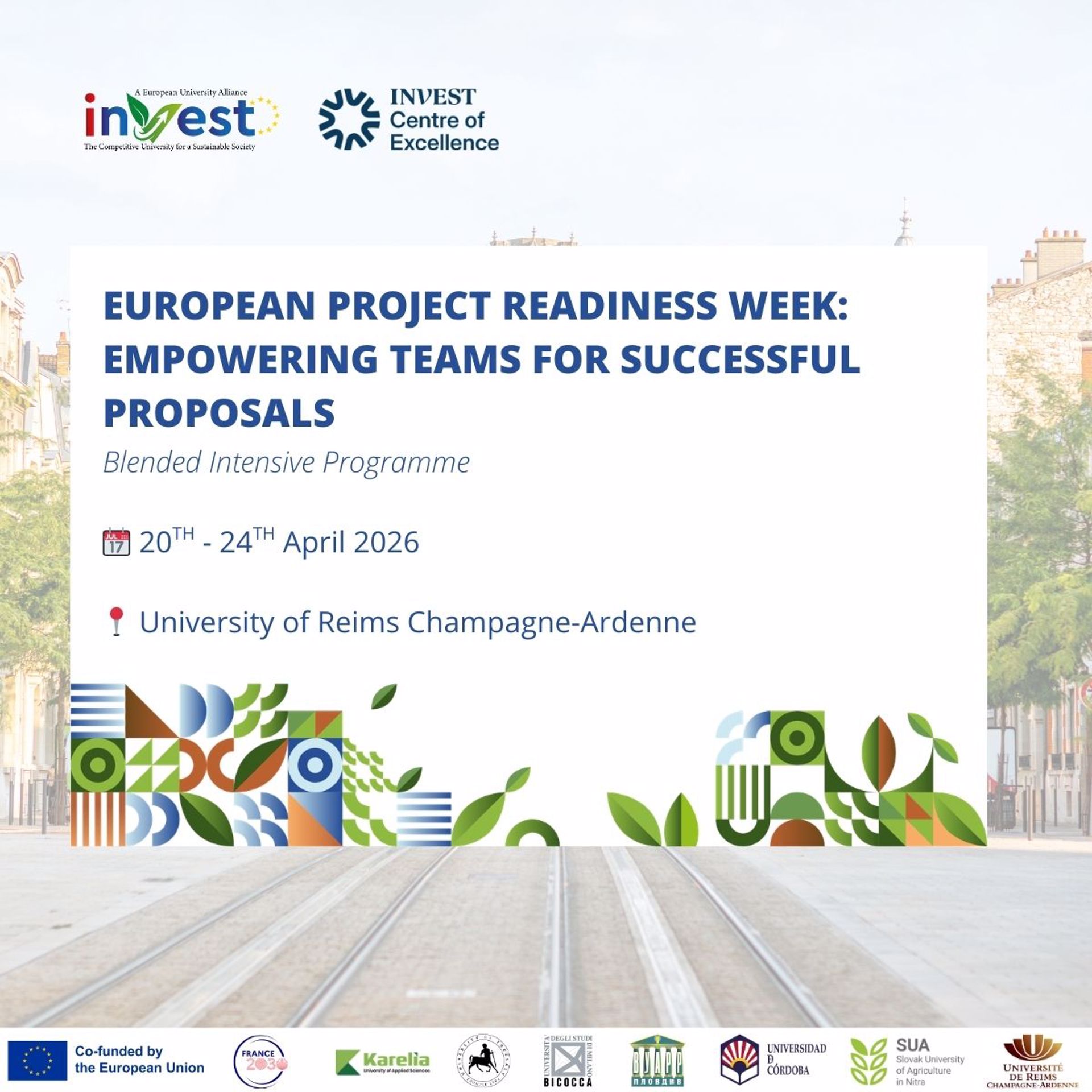 From 20th to 24th April 2026, the University of Reims Champagne-Ardenne is organising a Blended Intensive Programme for staff. This week will be focused on European projects as part of the INVEST Centre of Excellence (CoE), which was launched in November 2025.